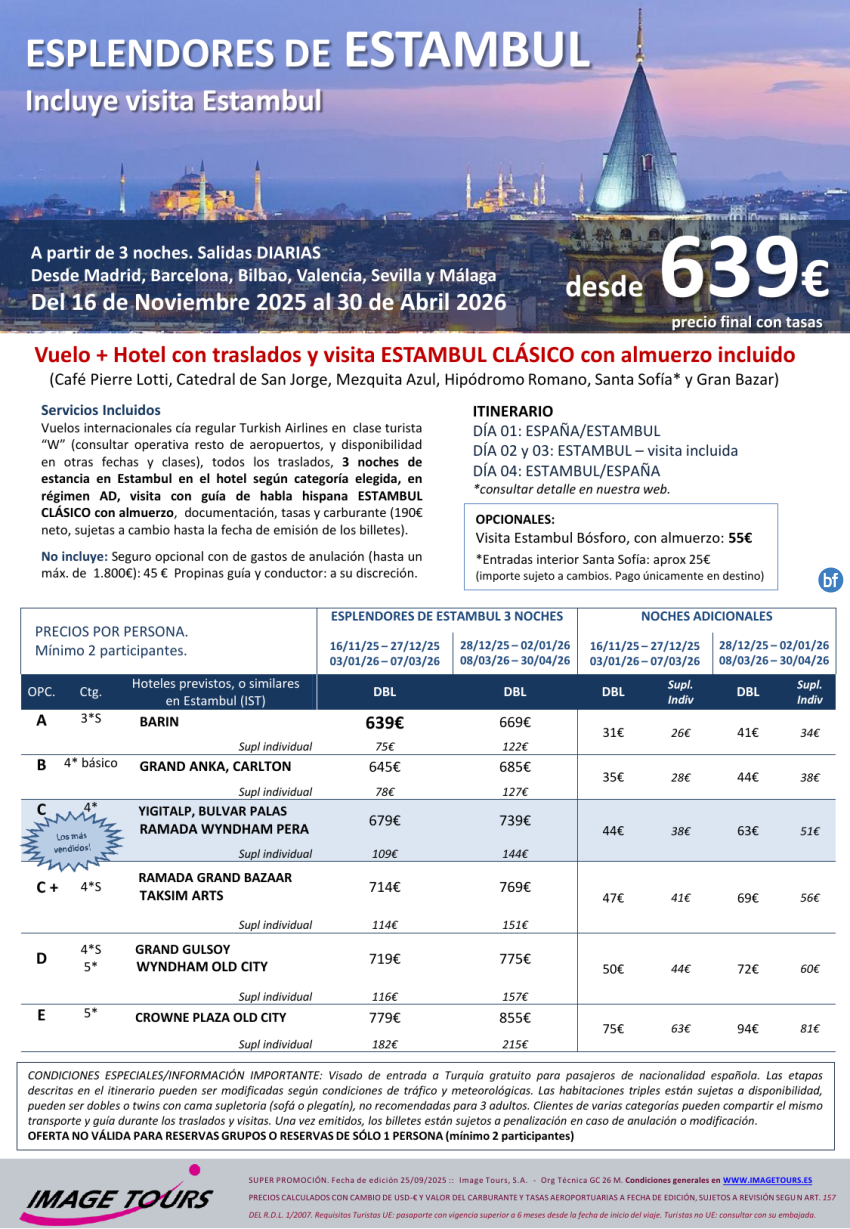 TURQUÍA Otoño-Invierno. Esplendores de Estambul: vuelo, traslados, hotel y visita con almuerzo, desde 639€