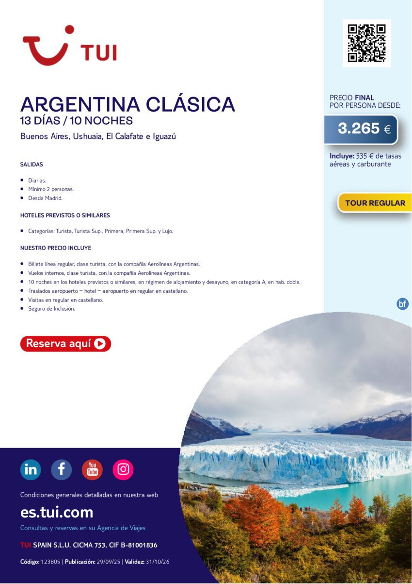 Argentina Clásica. 13 días / 10 noches. Tour Regular. Salidas diarias desde MAD desde 3.265 €