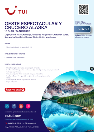 Canadá. Oeste Espectacular y Crucero Alaska. 16 d / 14 n. Salidas desde mayo a agostos desde 5.375 €