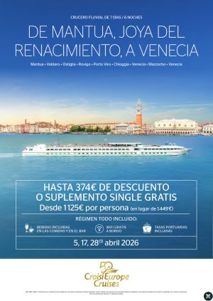 Hasta 375€ de DESCUENTO - Crucero de Venecia a Mantua - 7 días - Todo Incluido - 05/04 + 16/05 + 14/06 + 26/08