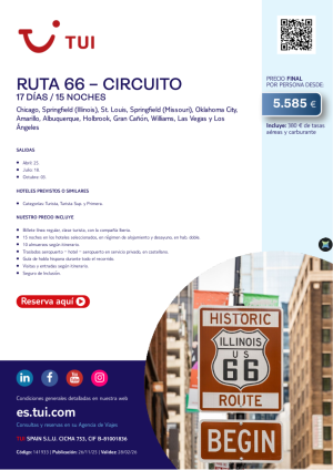 Ruta 66. Circuito. 17 días / 15 noches. Salidas 25 ABR, 18 JUL y 03 OCT desde 5.585 €